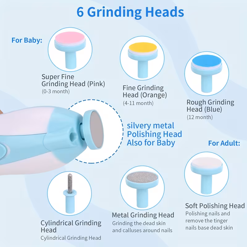✔ 6 interchangeable filing attachments for babies and adults
